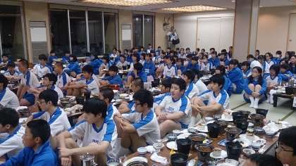 修学旅行実行委員会からの諸連絡の後、全員手をあわせて!