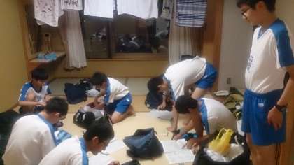入浴後は各部屋で自由時間を過ごし、部屋会議を行い、明日の準備をした後、就寝準備です。