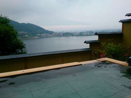 昨日、東中生が疲れを癒した露天風呂から眺める富士山と河口湖です。