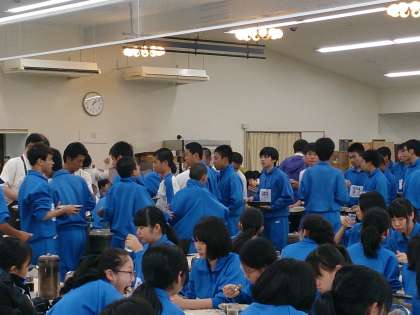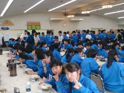 昼食はカレーライスです。おかわり自由!ということで、この行列です!驚きの食欲です。
