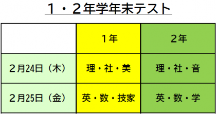東中百景〜1・2年 学年末テスト(2・3日目)