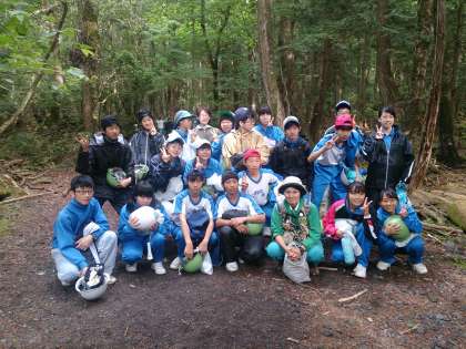 約2時間半、富士山の樹海を歩き、洞窟の中に入り、自然の神秘、富士山の噴火から1000年の歴史に触れることができました。すべてのコースを終えた東中生は充実感・達成感に満足そうでした!