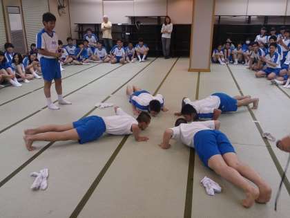 ◎プログラム4番『腕立て伏せ耐久勝負』、クラスを代表するパワーの持ち主の登場に、弾けんばかりの応援団!!