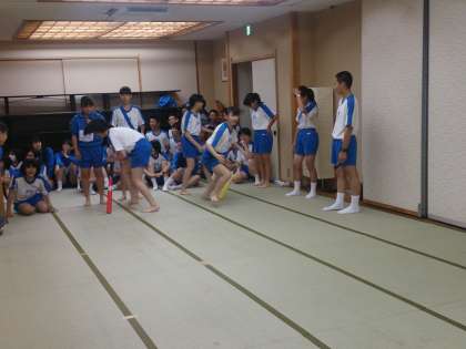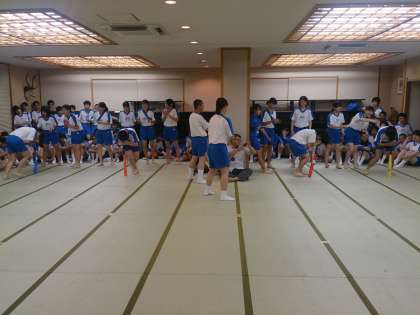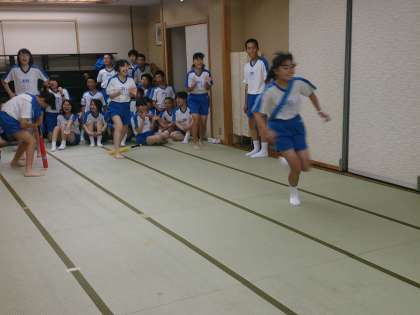 ◎プログラム5番『ぐるぐるバット』、目が回っても、クラスのために!まずは女子からです!