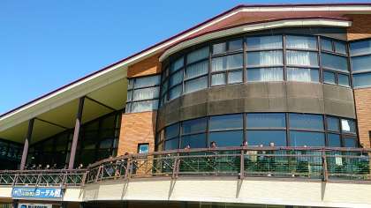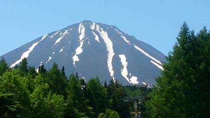 ほうとう作り会場に着きました。富士山を眺めるスキー場の施設です。