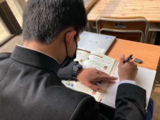 副読本として大阪市環境局からいただいている「おおさか環境科」や、SDGsに関する書籍、朝日新聞社にいただいた冊子を読みながら、「SDGsをめざした企業の製品やサービスを紹介しよう」に取り組んでいます。
