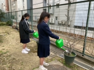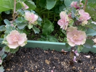 花壇に肥料を撒きました。元気に成長してほしいですね。