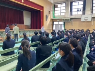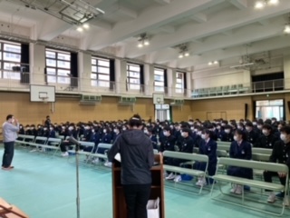 11日(金)の卒業式に向けて、式典の練習を行っています。学年主任の掛川先生の「主役は君ら」という言葉を受け取り、しっかり練習していきます。