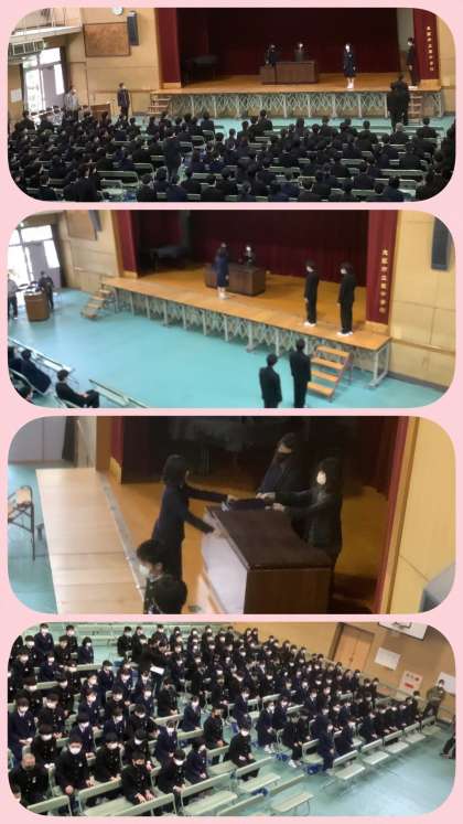 答辞の際の動きの確認、一人ひとりの授与の所作、動きの確認をしていきます。体育館が心地良い緊張感に包まれています。