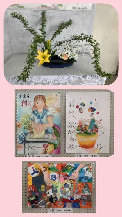 また、玄関ホールには、昨日、伝達で表彰を受けた「第51回大阪市明るくきれいな選挙推進ポスター」特選2作品、入選1作品が掲示されています。力作揃いです。受賞おめでとうございます。