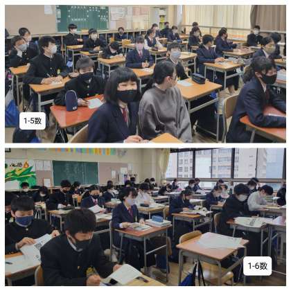 昨日から雨が降り続いており、今日は肌寒い気温となっています。さて、本日の授業のようすです。現在のクラスで過ごすのもあと3日です。皆さん、有意義にすごしてください。