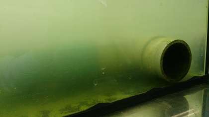 東中百景のひとつである池が最近泡がたち、白く濁るという異変がありました。よくよく見ると卵を生みつけています、さらによく見ると約5ミリほどの稚魚が生まれています。