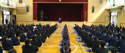 校長先生の話に続き、生活指導担当の先生からお話を聞きました。