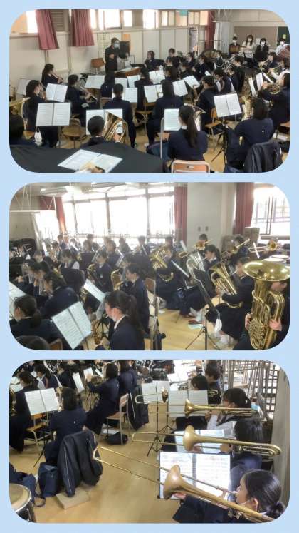 第20回の節目を迎える「サンクスコンサート」。3年生も合流して急ピッチで曲を仕上げています。3年生が入ることで、1・2年生も落ち着いて演奏できているようで、聞こえてくる曲に聴き入ってしまいます。さすが先輩の力です。コンサートは3月29日(火)。感染症対策を徹底して練習に励みます!