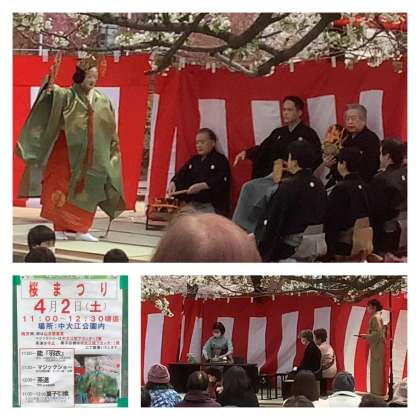 校区内の各公園で、桜が咲き誇る土曜日。中大江公園では「桜まつり」が開催されました。感染症対策を講じての3年ぶりの実施。昨年、生徒会役員の生徒がお世話になった「能」の舞台、マジックショー、茶道は立礼(りゅうれい)がご代表の方にご披露されました。