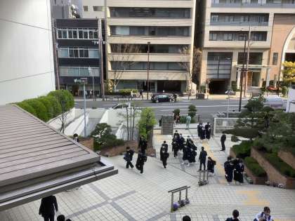いよいよ生徒の皆さんが登校してきました。このあと、クラス発表が行われ、新しい教室での活動が始まります。放送で行う着任式・始業式、生徒会主催の対面式と進みます。