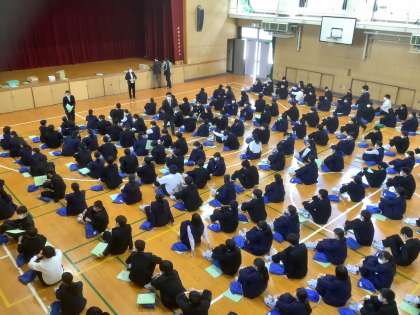 3年生の学年集会の様子です。2年生の時のクラスに並び変わったりしましたが、さすが3年生。とてもスムーズに行動できていました。