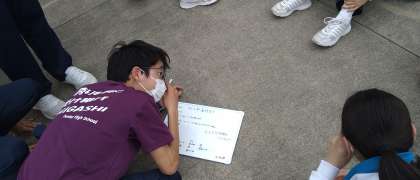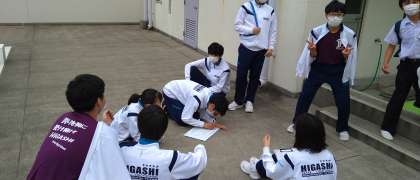 1年生が帰ったあと、3年生達で明日の仮入部についてミーティングしています。ホワイトボードにメニューを書きながら話し合っています。このような時間を経験して、先輩としての自覚が高まっていきます。