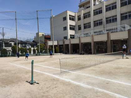 ソフトテニス部は、大阪市春季総体の予選を4月23日(土)に控えています。春休み期間中には練習試合や実践形式の練習を多く積むことができました。