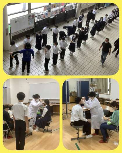 今日は2年生の眼科検診。生徒たちは先生の話をよく聞き、とてもスムーズに検診を進めることができました。明日は3年生です。