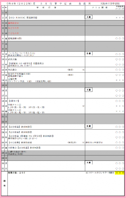 5月 行事予定表を掲載します