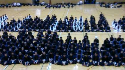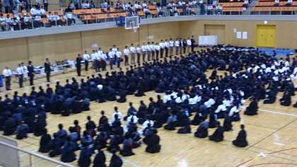 大阪市立中学校春季総合体育大会2日目、浪速スポーツセンターで、男女剣道部の団体戦が繰り広げられています。