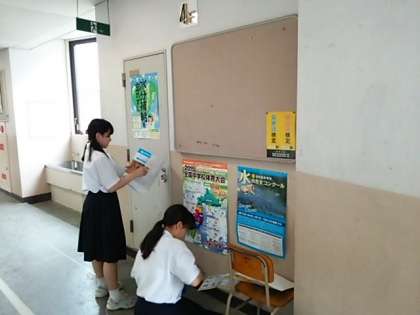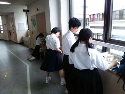 毎月、廊下の掲示物の張り替えを行っています。1・2年生の廊下には、「写真ニュース」やお知らせ、博物館などの特別展などさまざまなためになる記事が貼ってあります。