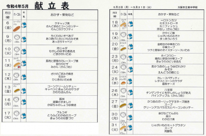 5月献立表(イラストVer)を掲載します(こちらをクリックするとご覧いただけます)。