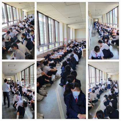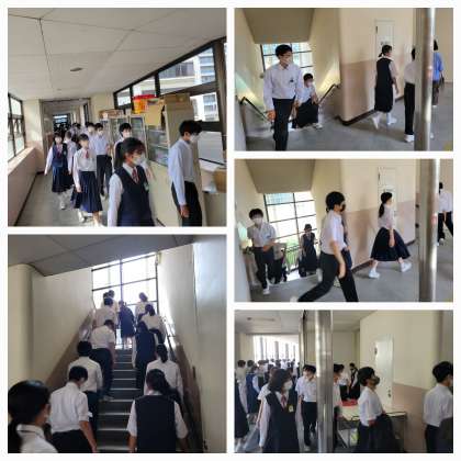 その後、地震による津波警報がでた場合を想定して3階以上に避難する訓練を行いました。