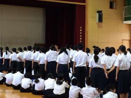 本日1年生の学年集会が行われ、太田先生から挨拶の仕方についてお話がありました。慣れてくると雑になってしまいがちですが、 大きな声でしっかりとお辞儀をすることが大切です。2、3年生のように丁寧にきっちりと挨拶ができるようになりましょう。