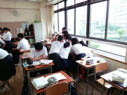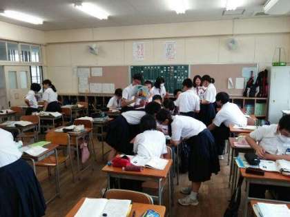 テスト前日のある授業風景です。少し難しい内容の授業であったため、時間を与え、生徒どうしで教え合いをしてもいいですよ、と言ったときの様子です。