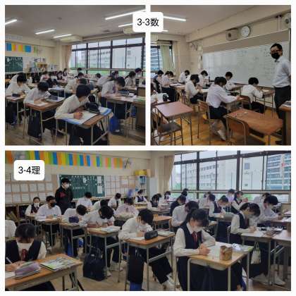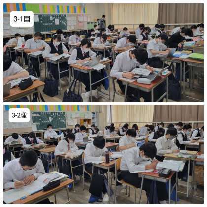 さて、本日の授業のようすです。テスト前で自習や対策プリントを行っている授業もありました。あさってからは中間テストです。皆さん、頑張ってください。