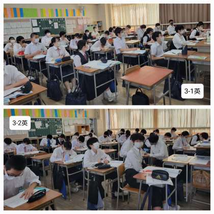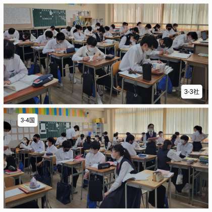 さて、本日の授業のようすです。明日から中間テストとなっています。皆さん、頑張ってきた成果が発揮できるようにお家でも復習や提出物を頑張りましょう。