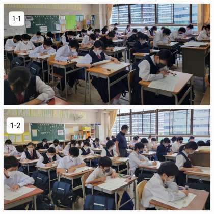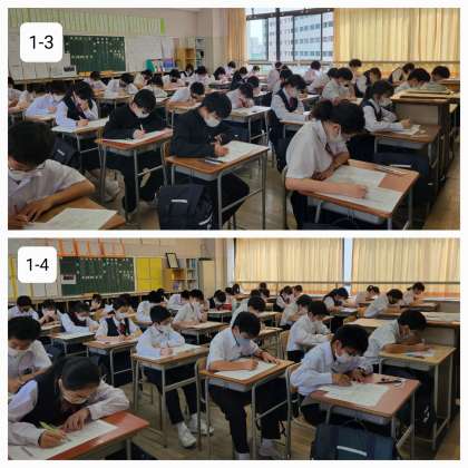 今日と明日は中間テストです。皆さん、真剣な表情で問題に取り組んでいます。頑張ってきた成果が発揮できることを期待しています。