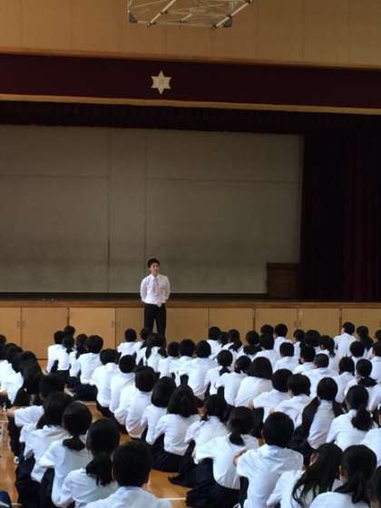 本日6限に、教育実習生から3週間の感想を交え、「夢をあきらめない」「友達を大切にしよう」という趣旨の講話をしていただきました。短い間でしたが、ありがとうございました!