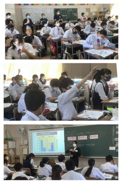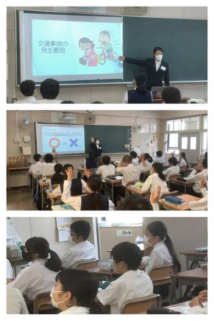 3週目に入った教育実習。本日は大学から先生にお越しいただき研究授業です。3週間の実習の成果を存分に発揮しています。2年生の保健の授業のめあては「交通事故の発生要因を理解しよう!」。教室には、先生も生徒の皆さんも心地よい緊張感に包まれて授業が進みます。