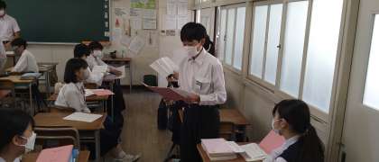 中間テストが終わり、今週は自分で作成した俳人へのインタビューを発表し、みんなで評価しています。