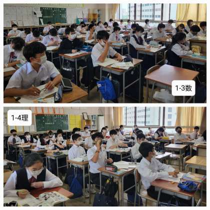 さて、本日の授業のようすです。テスト返却もほぼ終わりましたが、いかがでしたか?間違えたところの復習をしっかりしてください。