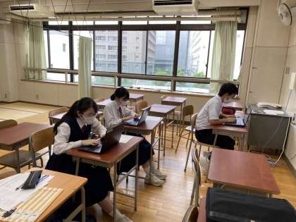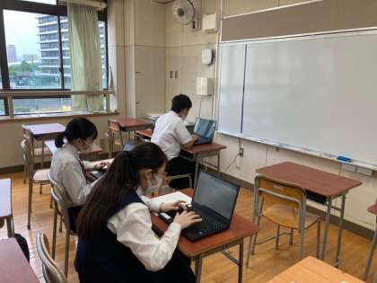 修学旅行に向けて、実行委員が歌集作りに取り組んでいます。パソコンを駆使し、集中して作成してくれています。