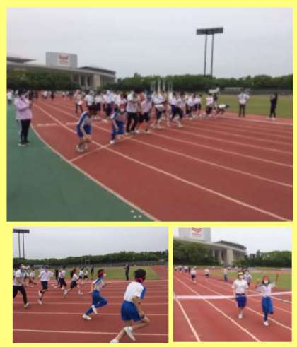 「トラック1周走」です。長居陸上競技場のトラック(400m)をみんな力いっぱいに走ります。