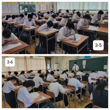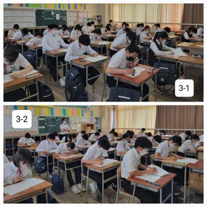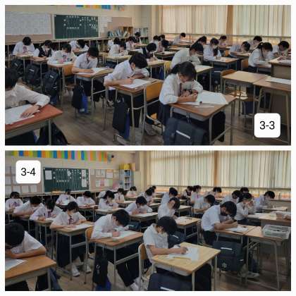 本日3年生は、校内での1回目の実力テストです。皆さん、日頃の成果は発揮できましたか?