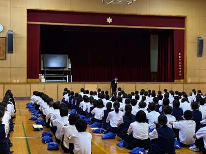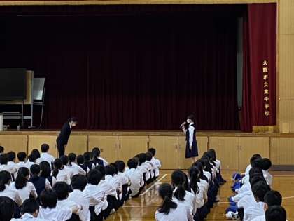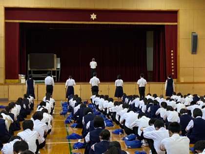 明日でお別れする教育実習の先生からご挨拶があり、生徒代表がお礼の言葉を述べました。