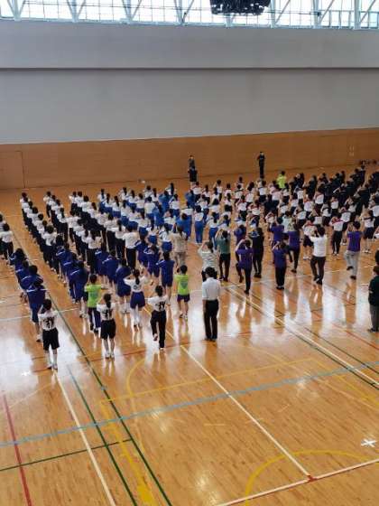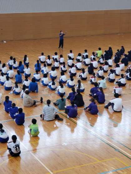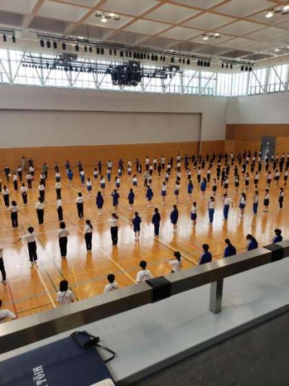 ストレッチのあと、昨日の復習をしています。今日だけ参加の人は大変ですが、なんとかみんなについていっています。