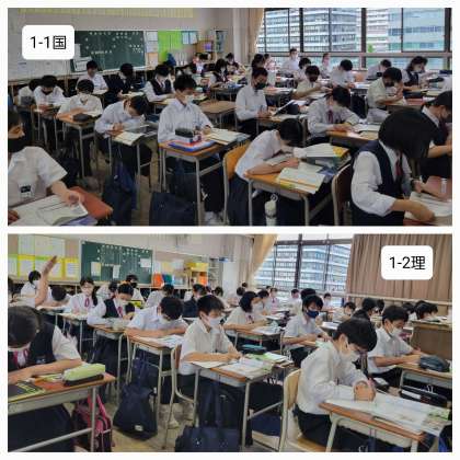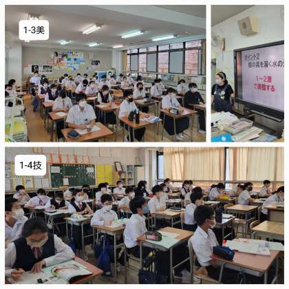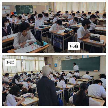 本日は、昨日までの雨もあがり朝から暑い日となっています。1年生は金曜日から一泊移住です。寒暖差で体調を崩さないようにしてください。さて、本日の授業のようすです。皆さん、頑張りましょう。