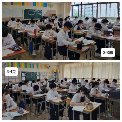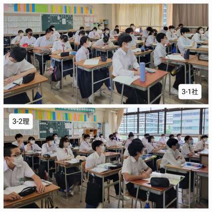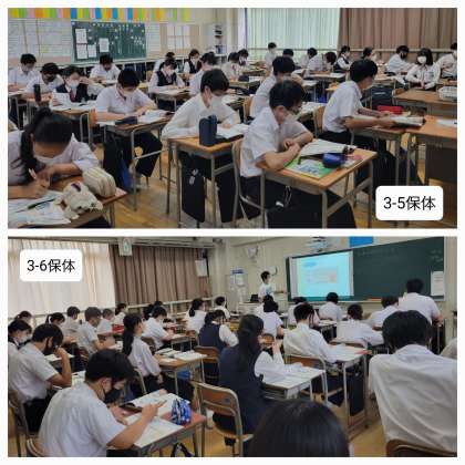 本日は、昨日までの雨もあがり朝から暑い日となっています。3年生はいよいよ明日から修学旅行です。寒暖差で体調を崩さないようにしてください。さて、本日修学旅行前最後の授業のようすです。皆さん、頑張りましょう。