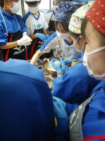 続いて、小さいあんこ玉はごはんで包み、大きいあんこ玉で、ごはんを包みます。