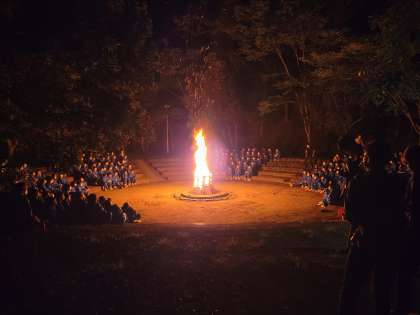 1年生 一泊移住(キャンプファイアー) 迫力の点火!