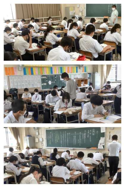 道徳の授業では、教科書の読み物教材を主たる教材として、創意工夫された授業に、生徒たちはしっかりと参加しています。