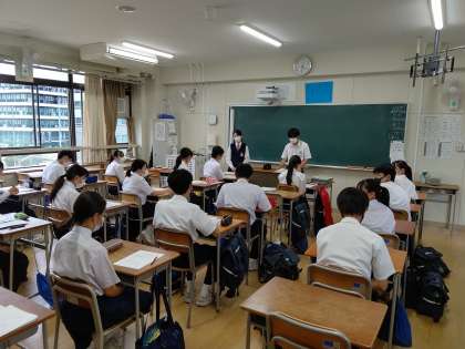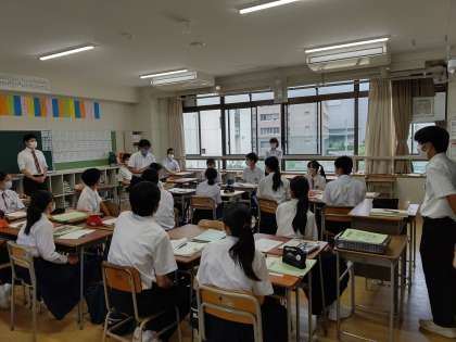 35期生の部長会議です。普段、部活動だけでなく、学校生活が良くなるように、朝の校外清掃やあいさつ運動に取り組んでいます。今回は取組をさらにすすめるために話し合いを行っています。