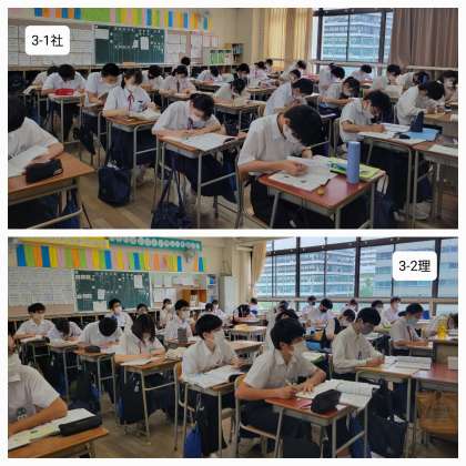 本日も朝から汗ばむ暑さとなっており、日中は30度に達する気温になるとのことでした。さて、本日の授業のようすです。暑さに負けず、期末テストに向けて頑張ってください。
